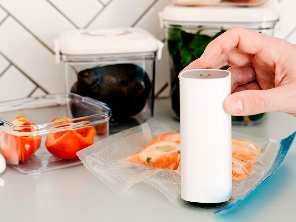 Most of us have also tried to use vacuum sealing, since this is by far the best way to preserve food for longer, without freezing it – and even when freezing, vacuum is a clear benefit. But using a regular vacuum sealer is just not very convenient. You need to have a huge vacuum machine, which you need to find in your cabinet and then plug into the power outlet. Then you would need to find your vacuum bags and use the machine to make the vacuum and seal the bag by basically melting the plastic. We have had these machines ourselves – but eventually they just got to stay in the cabinet, simply because they were such a hassle and cumbersome to use.