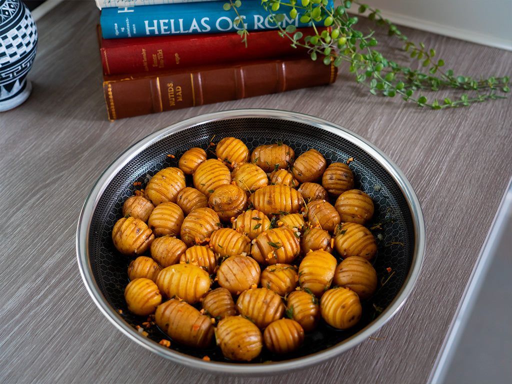 But this is not where the benefits stop, because the ONYX COOKWARE™ HANDLELESS FRYING PANS are so much more than “just” clutter-free products. We all know the common scenario of trying to use 3-4 items on your stove at the same time. Could be when you’re boiling potatoes, while also frying some vegetables on one pan, and some meat on another. Most stoves make this scenario impossible, even though the stove has enough burners – and why is that? Simply because the handles of each pan are getting in the way of one another. But with our ONYX COOKWARE™ HANDLELESS FRYING PANS, this is a problem of the past!