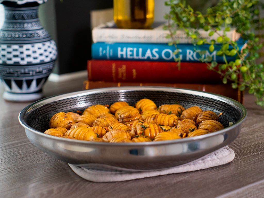 But this is not where the benefits stop, because the ONYX COOKWARE™ HANDLELESS FRYING PANS are so much more than “just” clutter-free products. We all know the common scenario of trying to use 3-4 items on your stove at the same time. Could be when you’re boiling potatoes, while also frying some vegetables on one pan, and some meat on another. Most stoves make this scenario impossible, even though the stove has enough burners – and why is that? Simply because the handles of each pan are getting in the way of one another. But with our ONYX COOKWARE™ HANDLELESS FRYING PANS, this is a problem of the past!