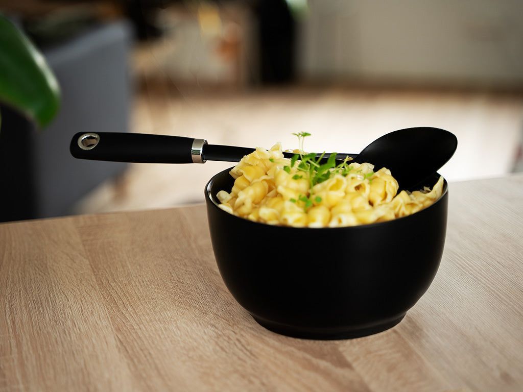 The coating of the ONYX COOKWARE™ SOLID SPOON is stain repellent which keeps the product looking good during service and makes it a breeze to clean afterwards. It almost seems like a sin to not hand-wash a product this good looking, but we promise the solid spoon is 100% dishwasher safe. The stainless-steel core works perfectly with the ONYX COOKWARE™ MAGNETIC KNIFE WALL MOUNT allowing for some seriously convenient storage.